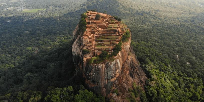 Sigiriya or Sinhagiri is an ancient rock fortress located in the northern Matale District near the town of Dambulla in the Central Province, Sri Lanka. It is a site of historical and archaeological significance that is dominated by a massive column of rock approximately 180 m (590 ft) high. According to the ancient Sri Lankan chronicle the Cūḷavaṃsa, this area was a large forest, then after storms and landslides, it became a hill and was selected by King Kashyapa (AD 477–495) for his new capital. He built his palace on top of this rock and decorated its sides with colorful frescoes. On a small plateau about halfway up the side of this rock, he built a gateway in the form of an enormous lion. The capital and the royal palace were abandoned after the king's death. It was used as a Buddhist monastery until the 14th century. Sigiriya today is a UNESCO-listed World Heritage Site. It is one of the best-preserved examples of ancient urban planning.