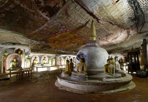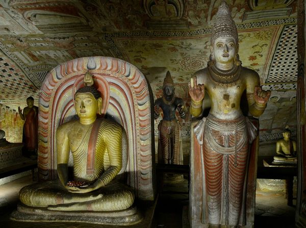 Dambulla cave temple also known as the Golden Temple of Dambulla is a World Heritage Site (1991) in Sri Lanka, situated in the central part of the country. This site is situated 148 kilometres (92 mi) east of Colombo, 72 kilometres (45 mi) north of Kandy and 43 km (27 mi) north of Matale.